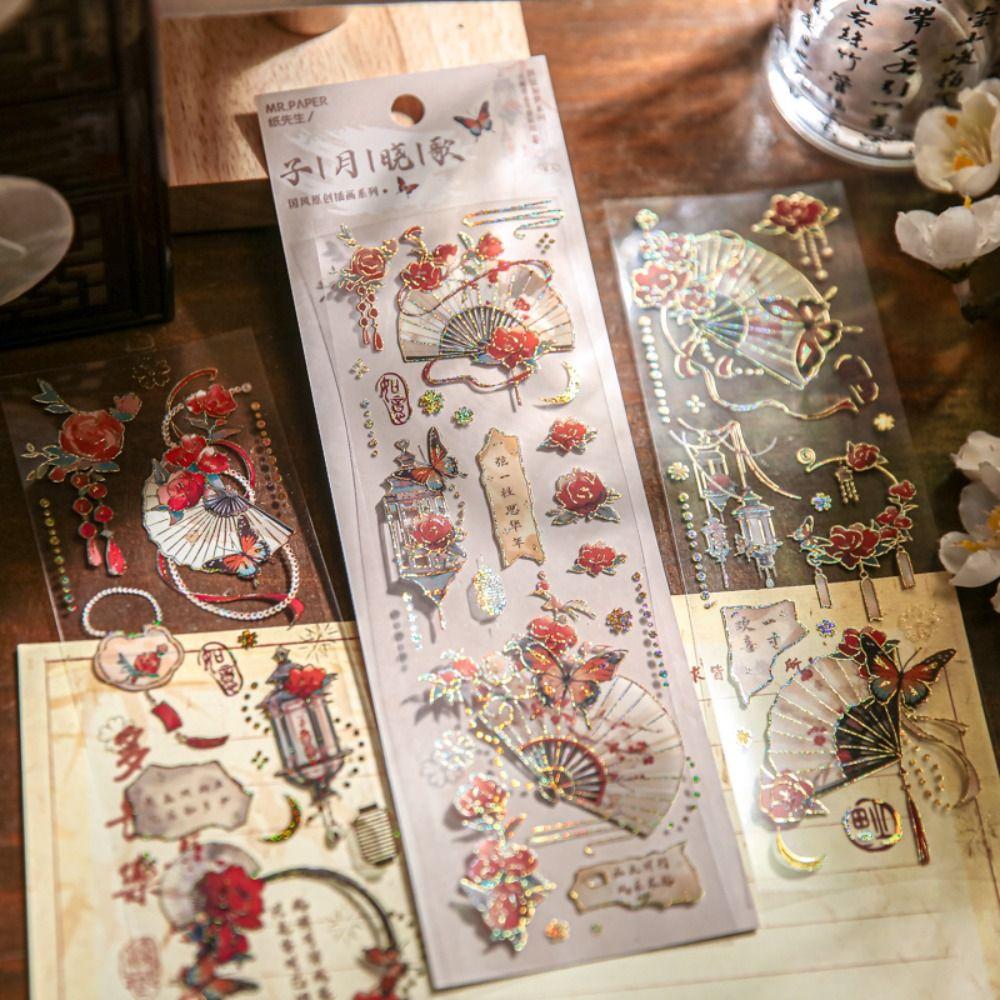 DIY Crafts Moonlight Flower Collage Decals Handmade Laser Aesthetic Decals Diary Album