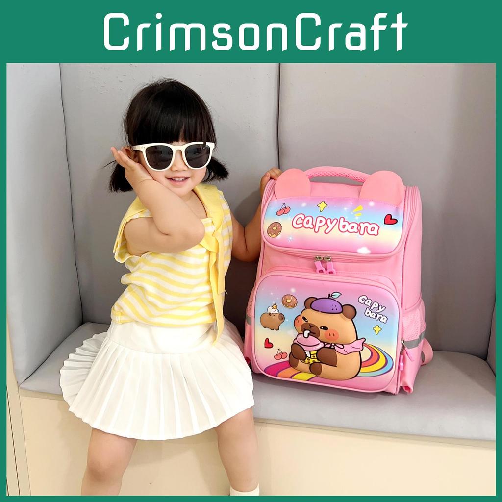 Cute Cartoon Capybara Pattern Kids Backpack For School With Durable Nylon For Boys And Girls