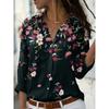 Autumn Women's Flower Print Shirt Fashion Button Top Slim Fit Comfortable Women's Button V-neck Casual Long Sleeve Shirt