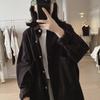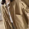Women's Loose-Fit Retro Workwear Jacket with Large Pockets - Plus Size, Slimming, Solid Color, Spring/Autumn