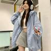 This versatile women's jacket is designed for casual sporty style, perfect for the spring season. Crafted from lightweight, stretchy spandex, it ensures comfort and ease of movement. The jacket features long sleeves and a protective hooded neckline, offering sun protection during outdoor activities while maintaining a chic and modern look. Ideal for layering, this jacket is a great addition to any wardrobe.