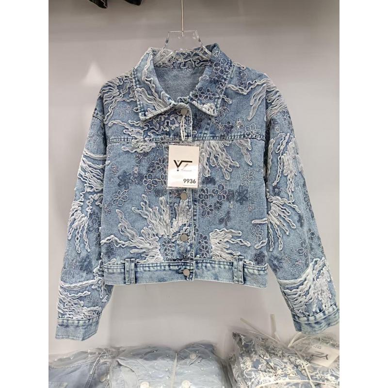 2025 Spring/Autumn Loose Lace Floral Embroidered Denim Jacket