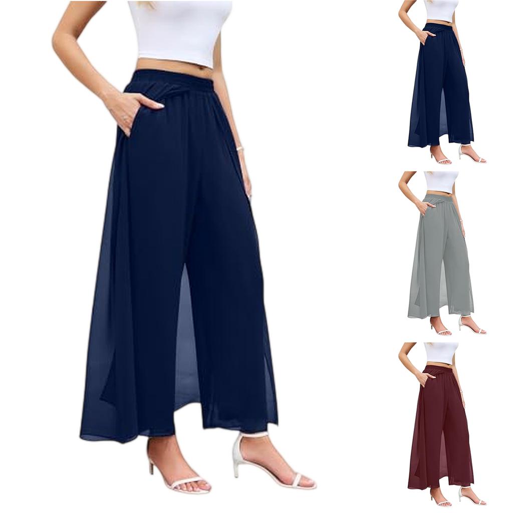 Women's Wide Leg Dress Pant Elegant Party Elastic Waist Trouser With Pockets