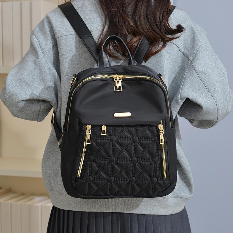 New simple embroidered thread backpack women's large-capacity multi-zipper commuter backpack Oxford cloth casual versatile shoulder bag