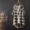 Plaid Shirt Women's Summer and Autumn Mid-length Loose Lazy Style Hong Kong Style Plaid Shirt Jacket Top Women