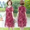 Women Summer Casual Dress Ladies Middle-aged Print Short Sleeve Pleated Dresses Female Vintage Mesh Yarn Floral Dress Vestidos