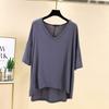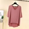 Spring Summer Women's Dusty V Neck Batwing Sleeve High Low Hem T-Shirt