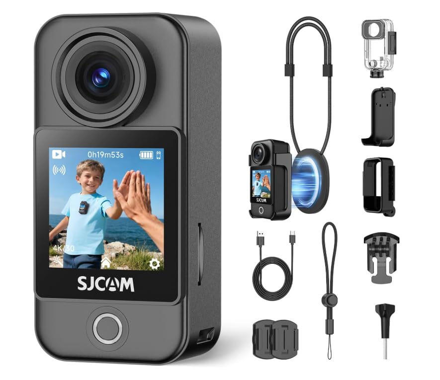 "I want selfies and waterproofing." "I want to be able to take pictures from my morning run to my evening karaoke without having to charge it for an entire day." "The angle of view on a smartphone is too narrow, so I can't fit the whole landscape in the frame..." [Set contents] C400Pocket main unit, detachable remote control, waterproof case, 20 buckles and clips, Japanese start guide, 1-year warranty
