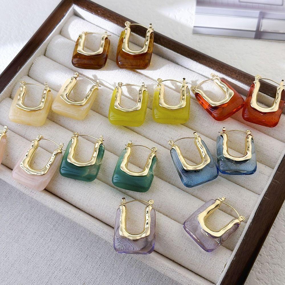 Irregular Shape Resin Earrings Vintage Style Geometric Earrings Ear Buckles Girls Jewelry