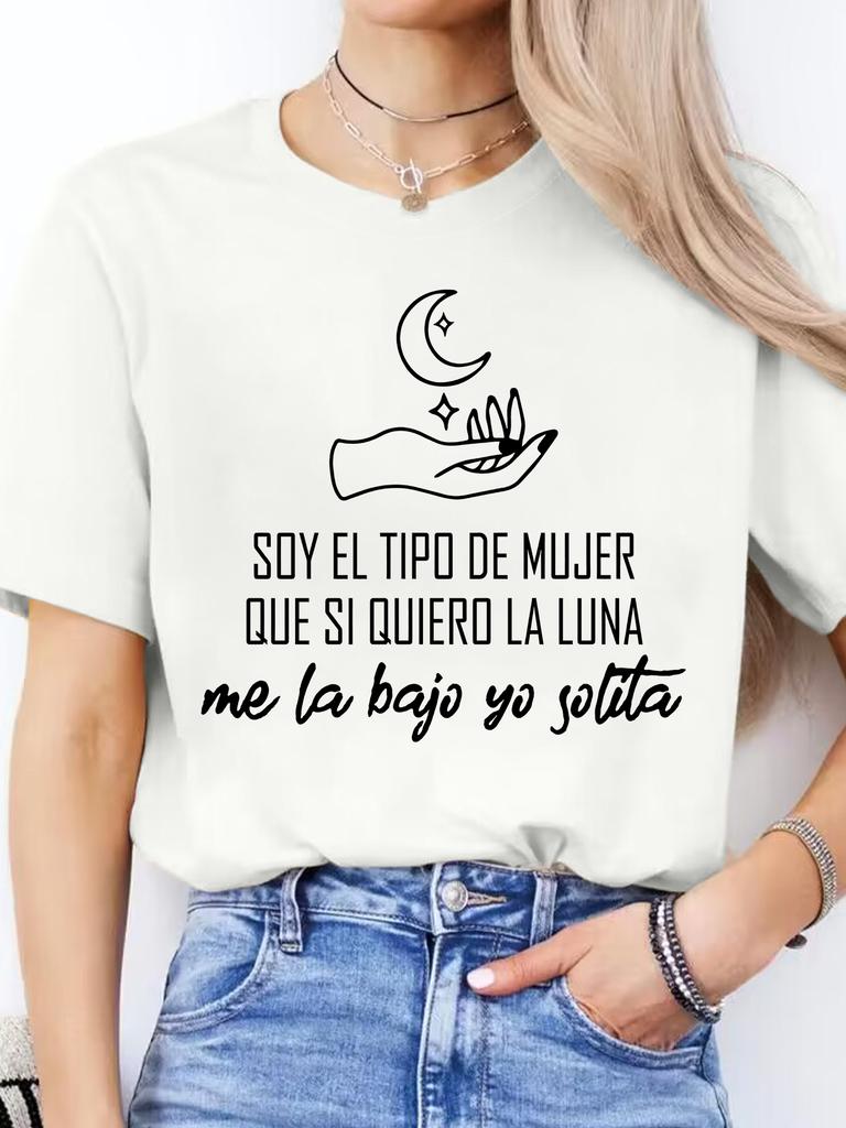 Evropské velikostiDámské sportovní tričko s kulatým výstřihem a krátkým rukávem s potiskem španělských písmen pro jarní a letní ležérní nošení