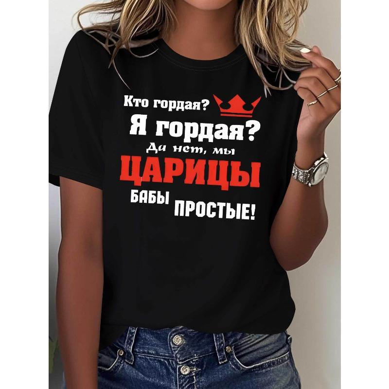 Women's Russian Phrase Queen T-Shirt "Who Is Proud? I Am Proud? No, We Are Tsaritsa!" Funny Text Print Casual Crew Neck Short Sleeve Summer Top