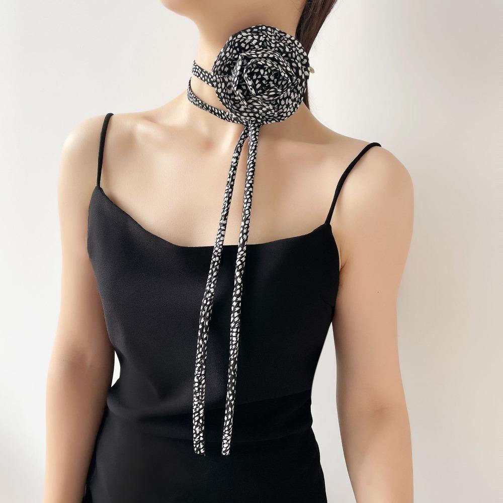 Korean Style Flower Clavicle Chain Elegant Leopard Print Chocker Vintage Chiffon Necklace Party
