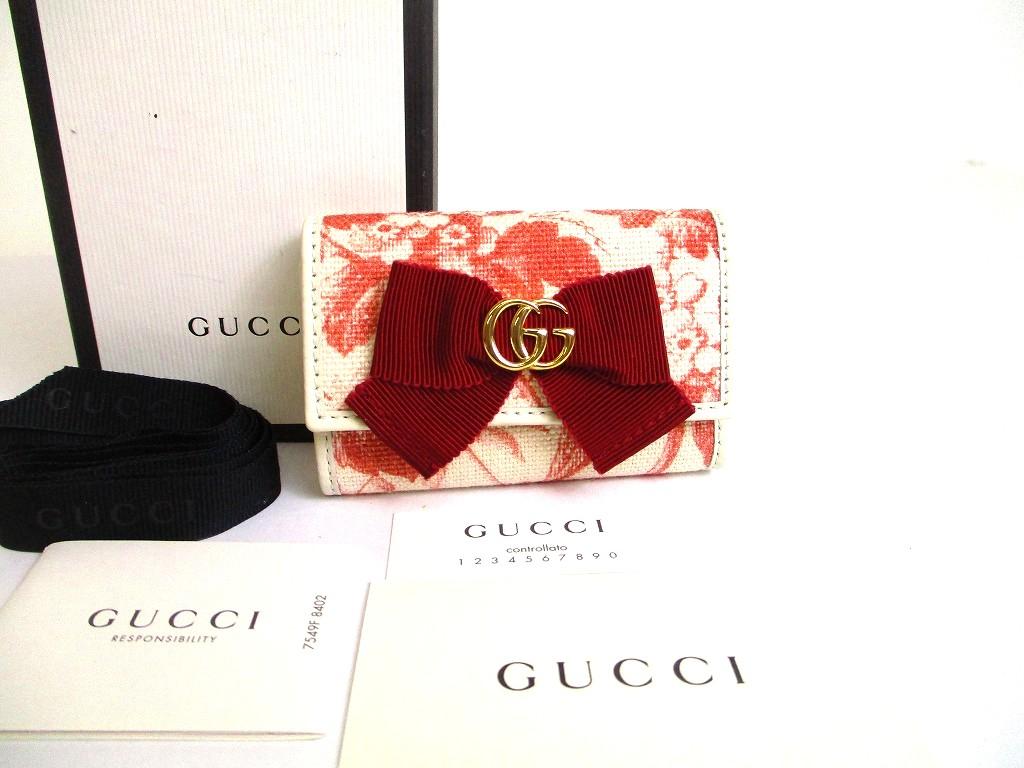 Product : GUCCI Double G GG Ribbon Motif White Leather 6 Pics Key Chain #b103