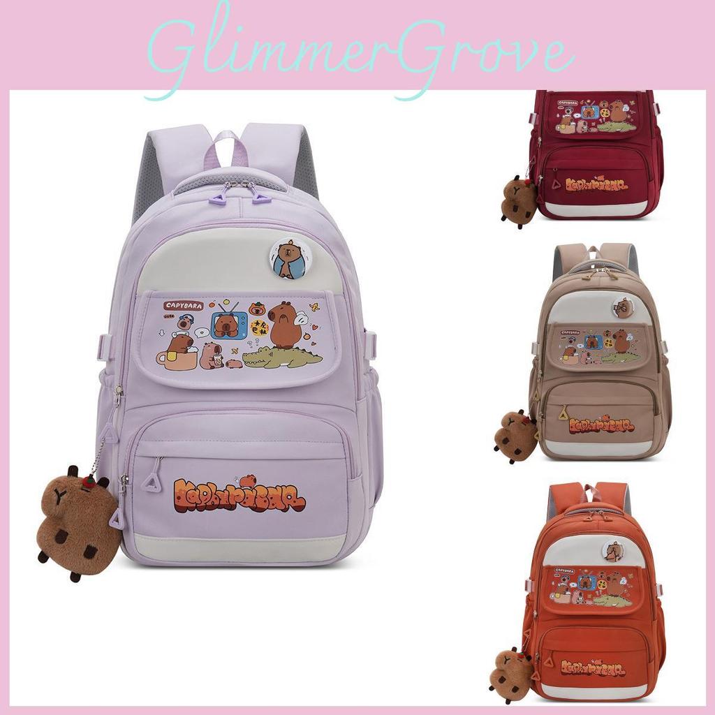 This cartoon capybara backpack features a multi-layer design with durable Oxford cloth material, measuring approximately 44*30*17cm deep. Its lightweight, breathable construction with waterproof properties supports daily school use and extended wear. The playful animal motif and colorful accents make it suitable for middle school students. Wipe clean with a damp cloth to maintain its vibrant appearance.