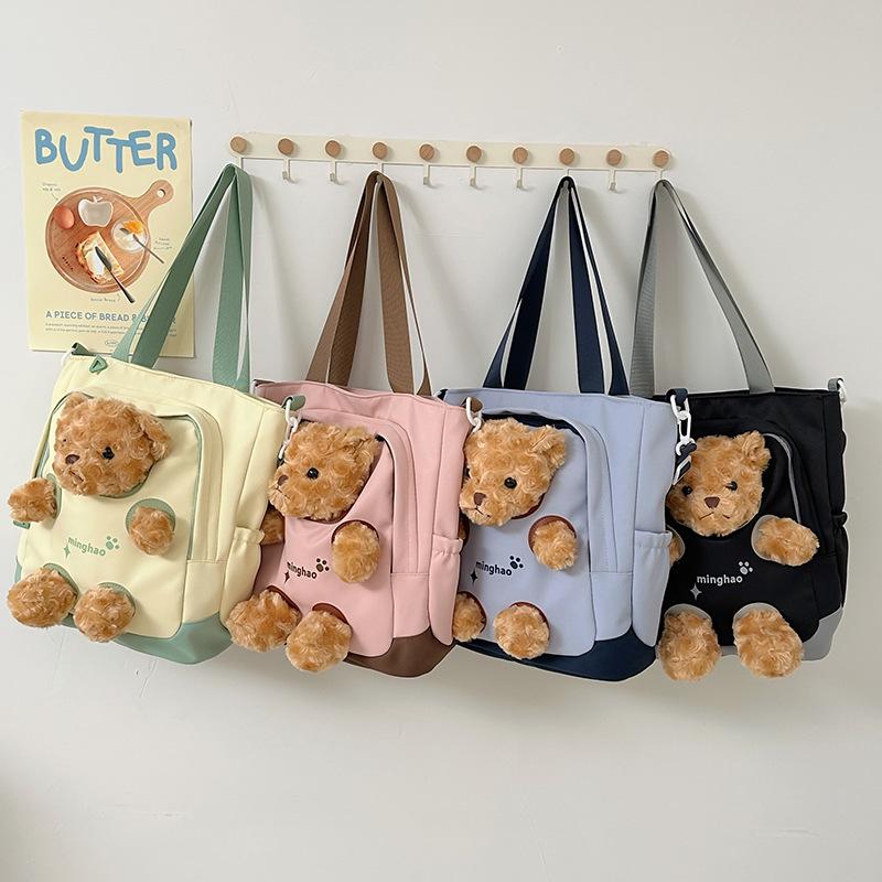 Cute bear crossbody bag women's new Korean version of the cartoon large-capacity shoulder bag student class tote bag trend
