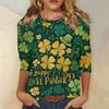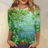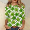 Dámské Módní Ležérní St. Tričko s potiskem na Den svatého Patrika, s kulatým výstřihem a tříčtvrtečním rukávem