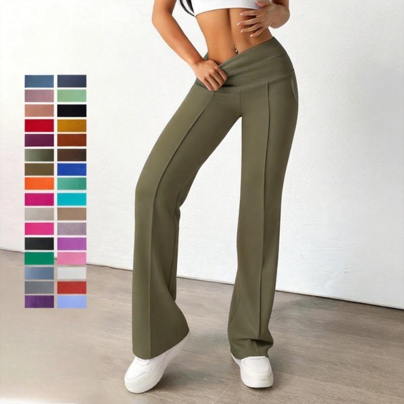 Women's High Waist Sports Pants, Slim Straight Long Trousers with Stitched Pockets, Outdoor Casual Comfortable Workout Pants