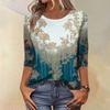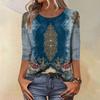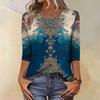 Módní vintage top s 3/4 rukávem pro ženy, dámská ležérní halenka s tříčtvrtečním rukávem a kulatým výstřihem s potiskem