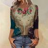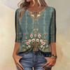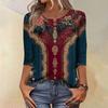 Trendy Vintage 3/4 Sleeve Top For Women,Ladies Casual Three Quarter Sleeve Round Collar Printed T-Shirt Blouse