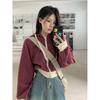 Korean Color Block Hooded Sweatshirt Jacket for Women - Autumn 2023: Short Drawstring Zipper Long Sleeve Top