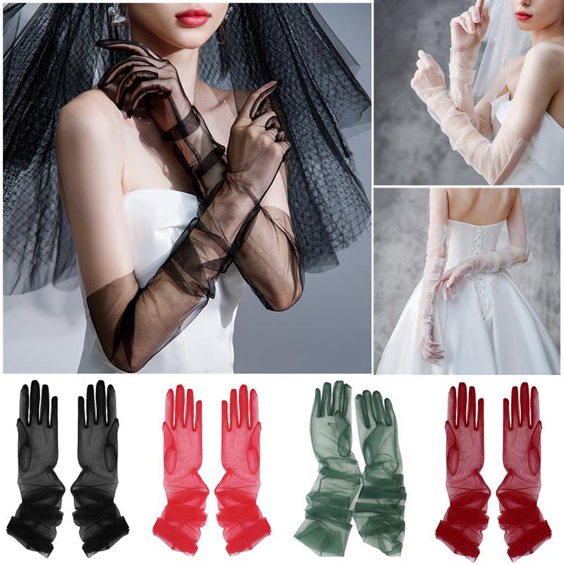 Dámské ultra tylové rukavice síťované průsvitné celoprstové loketní dlouhé rukavice vintage rukavice proti slunci svatební nevěsta šaty palčáky