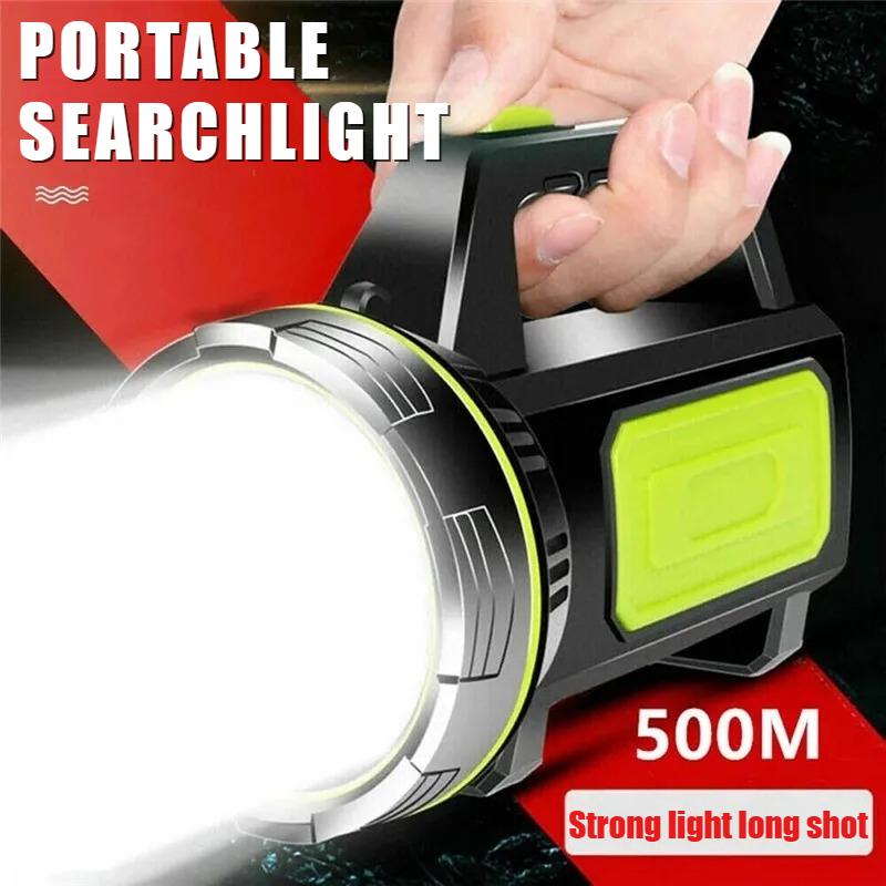 LED Strong Searchlight Flashlight Portable Hand Lamp Rechargeable 2 Lighting Modes Emergency Hiking Camping Energe Saving Torch