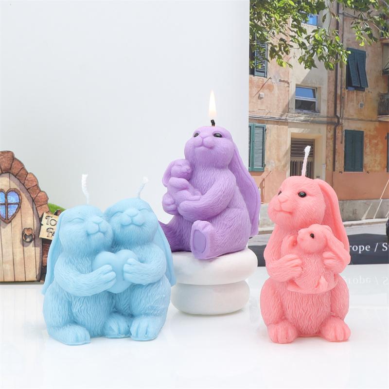 Easter Couple Holding Loving Rabbit Silicone Candle Mold DIY Mother Rabbit Holding Small Rabbit Easter Gift Candle Plaster