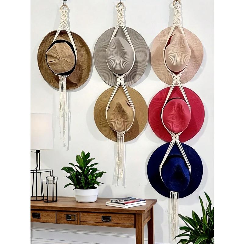 Boho Hat Hanger Cowboy Hat Rack With Tassel Modern Cap Display Hanging Organizer Hand Woven Baseball