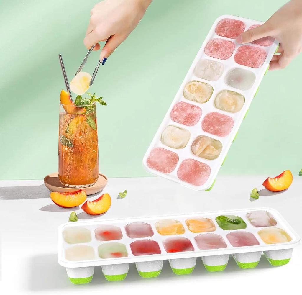 1-5PCS 6 Grid and 14 Grid Square Ice Cube Trays with Lids Silicone Soft Bottom Easy Release Mold for Homemade Ice