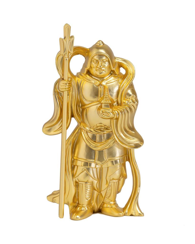 [Protection from misfortune, good fortune, fulfillment of great wishes] He is one of the Four Heavenly Kings, a guardian deity of Buddhism that was introduced from India, and is also known as "Tamonten." In ancient times, he was worshipped by warlords of the Sengoku period as a god of military fortune. He has the appearance of a warlord, holding a spear in his right hand and a pagoda in his left.