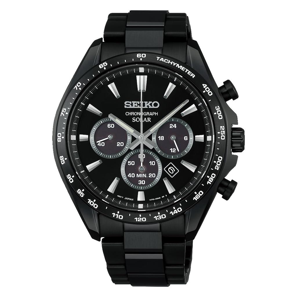 Seiko Selection SBPY187 Solární Chronograf Hodinky s Datumem a Celým Rokem 2026 Černá S Série Pánské 24hodinová Ručička, Černá, Model,