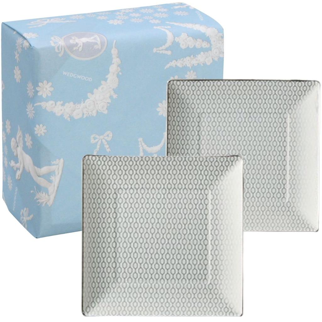 Wedgwood Official Wedding Gift Geo Platinum Square Wedding Gift for the Bride and Officially Imported Wrapping Tray, Pair, White, Tableware, Groom,