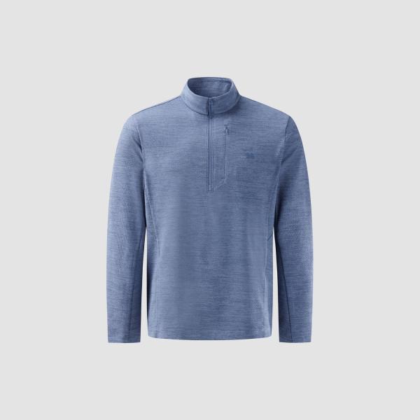 The KOLON SPORT Men's Melange Zip-up T-shirt JWTBS25141GBU is made of 100% polyester, suitable for hiking and outdoor activities. It comes in a stylish gray color, featuring details such as interlining reinforcement materials.