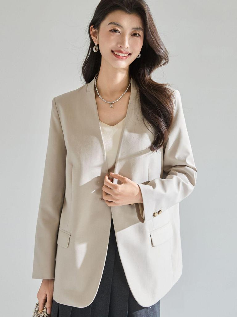 Spring-Summer Minimalist V-Neck Women's Loose Casual Suit Jacket
