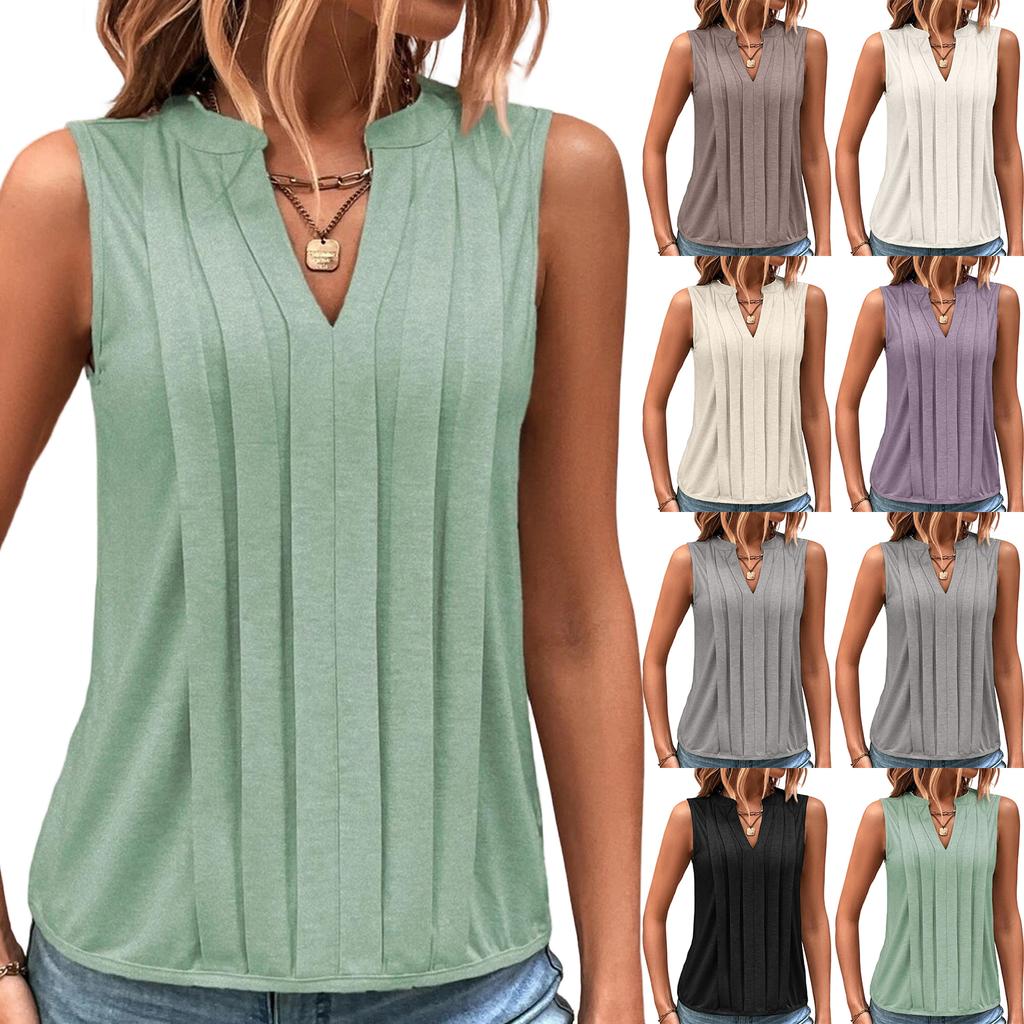 Ladies' Color Summer Fashion Temperament Elegant Pleated V-neck Vest Top