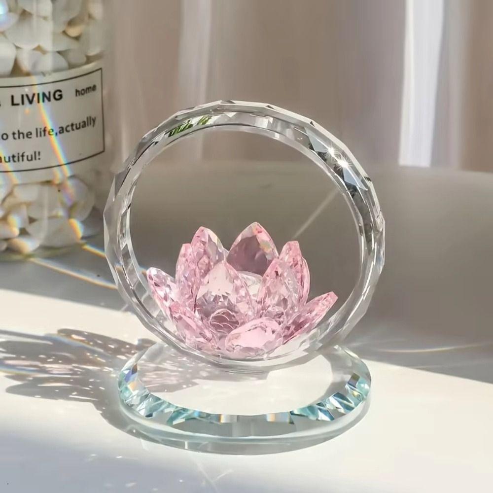 Stable Base Crystal Lotus Ornament Reflection Effect Clear Lotus Flower Collectible Home Decor