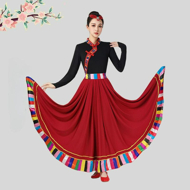 Tibetan Dance Performance Costume Female Ethnic Big Swing Long Skirt Square Dance Suit Clothes-headdress-long Skirt