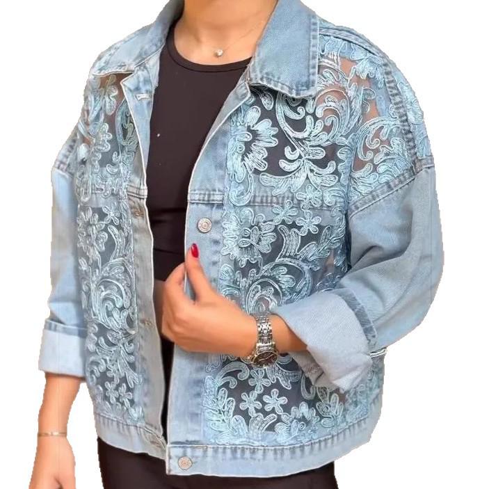Evropa a Amerika 2026 Ležérní džínová bunda s krajkovým patchworkem