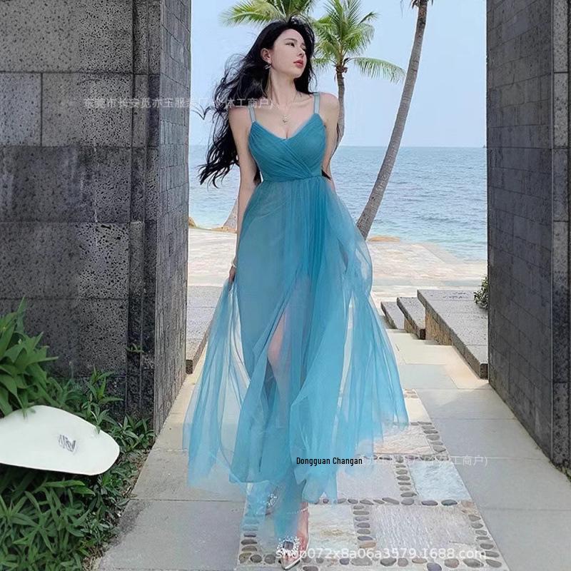 New Summer High-End Korean Style Women's Camisole Dress - Perfect for Seaside Vacations
