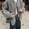 2025 Gray Embroidered Knit Cardigan Coat for Women - Autumn/Winter Loose, Thick, Relaxed Style