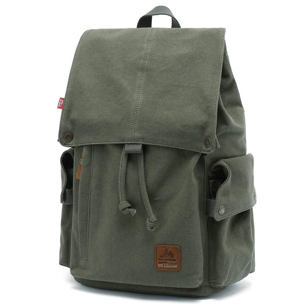 [SKYBOW] Canvas Backpack Large Capacity Retro Water-Repellent Unisex (Green)