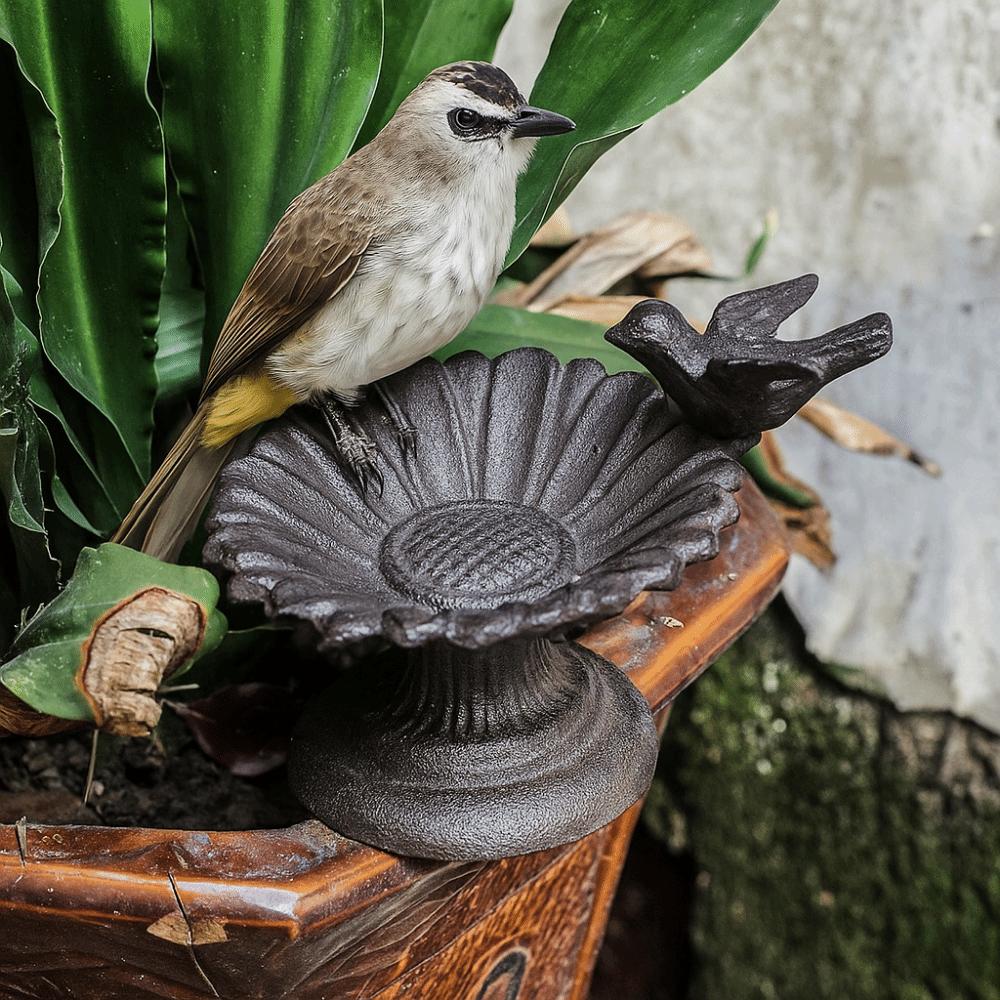 Retro Petal Bird Feeder Basin Nostalgic Bird Food Dispenser Art Statue for Bird Lovers