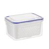 This food storage box is crafted from high-quality, non-toxic plastic, ensuring durability and safety for everyday use. Its fall-resistant and odorless material withstands both high and low temperatures, making it microwave and refrigerator safe. Featuring a tightly sealed, transparent food-grade lid, it effectively blocks dust and odors to keep your food fresh. The inner removable colander promotes ventilation with evenly distributed holes, preventing moisture buildup and extending the shelf life of fruits and vegetables.