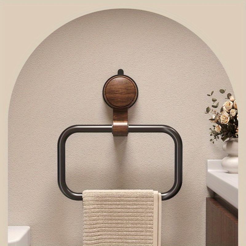 Vintage Walnut Wood Towel Ring with Suction Cup Mount, No-Drill Wall-Mounted Bathroom Towel Holder