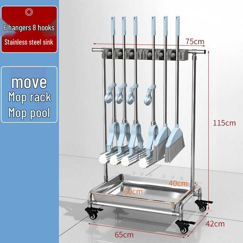 Mobile Stainless Steel Multi-Tool & Mop Holder with Sink