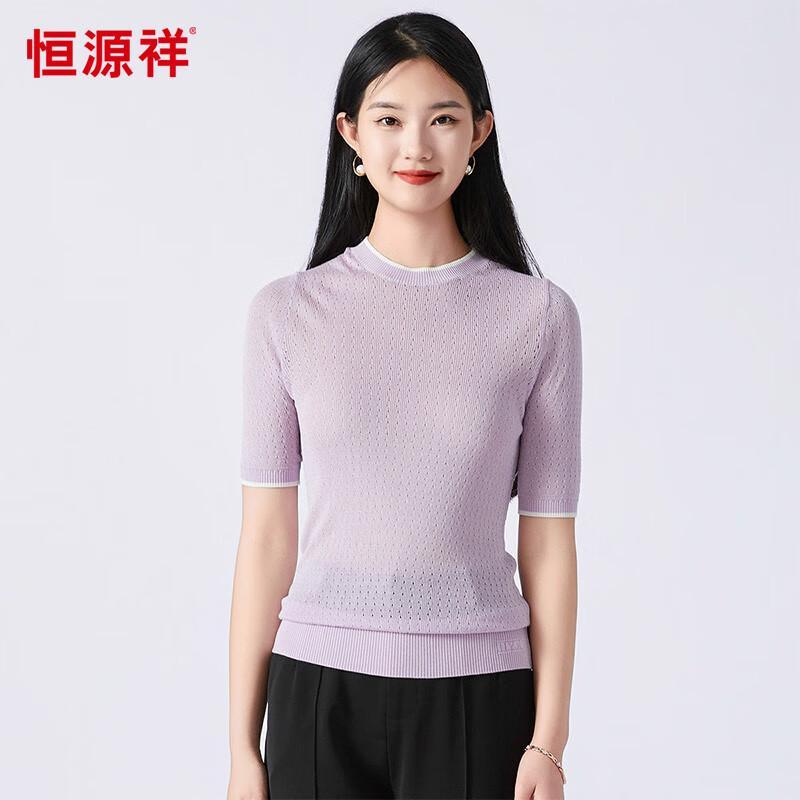 Hengyuanxiang Women's Silk Blend Knit Short Sleeve T-Shirt