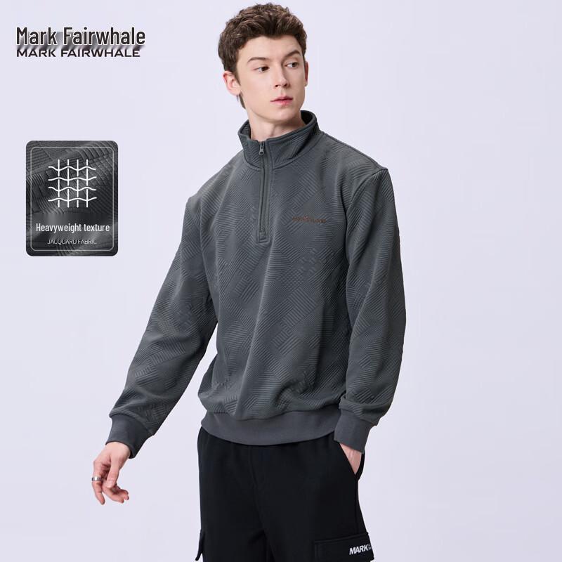Mark Fairwhale Men's Heavyweight Jacquard Stand-Collar Half-Zip Sweatshirt