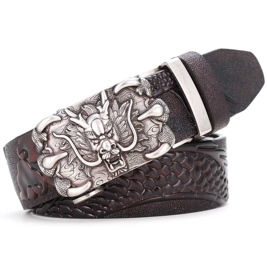 Men Leather Belt Metal Automatic Buckle Brand Luxury Waistband for Male Famous Work Business Black Coffee Cowskin Strap