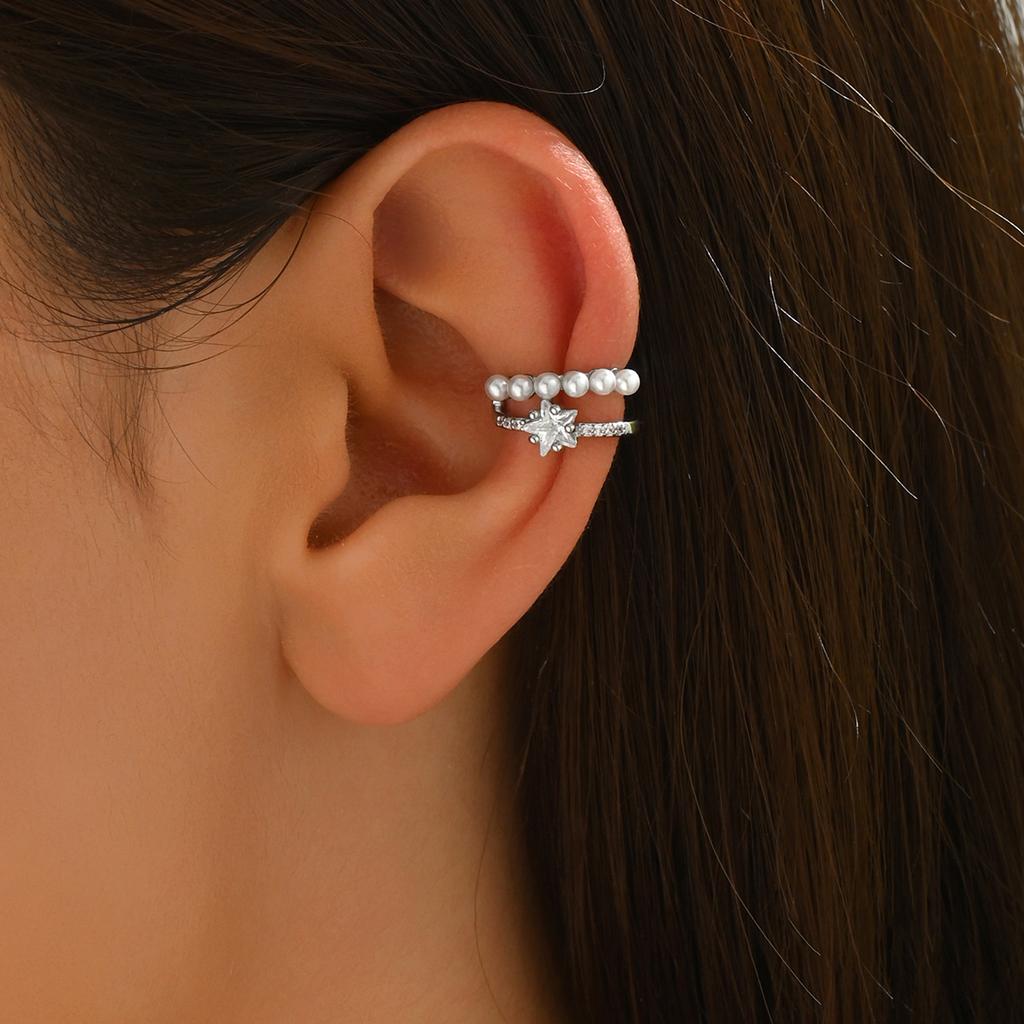 Small Niche Design with Sparkling Zirconium Stars, No Ear Holes, Ear Bone Clips, Women's Super Sparkling Temperament, Simple Ear Clip Earrings
