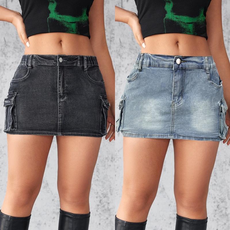 Džínová sukně Dámská letní vintage elastická přiléhavá pracovní oděv s kapsami boková sukně